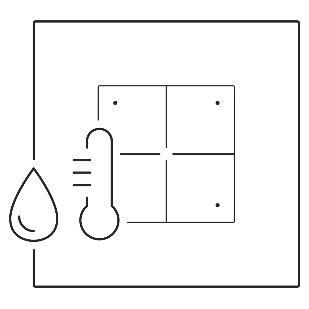 Innovativt 4- tryk til Niko Home Control er et betjeningsstryk med integreret temperatur- og fugtighedssensor. Med denne nye funktion kan der nemt implementeres multizonestyring af klima og ventilation, hvilket ikke kun forbedrer komforten, men også øger energieffektivitet. Sensorens målte værdier kan ses i Niko Home Appen, på din smartphone eller tablet. Tilsvarende indstilles dine ønskede set-punkter via Appen. LED´erne kan fungere som status indikator og giver feedback alt efter, hvordan den er programmeret. Trykket fungerer som orienteringslys, når LED´erne er tændt. TEMPERATURSENSOR Temperatursensoren kan tilpasses til at styre varme-/kølezoner og skabe det indeklima, du ønsker. Den kan enten fungere som en almindelig termostat eller styre f.eks. solafskærmninger. FUGTIGHEDSSENSOR Fugtighedssensoren åbner for endnu flere muligheder, som automatisk ventilationsstyring i rum som badeværelser og toiletter. MONTERING OG DESIGN Trykket fastgøres nemt til et vægmonteret busprint via en klikmekanisme. Trykket er tilgængelig i alle Niko designs og kan matches til lige præcis din indretning og stil. Optimer din hjemmeautomatisering med præcision, komfort og smart teknologi. Ramme bestilles separat.