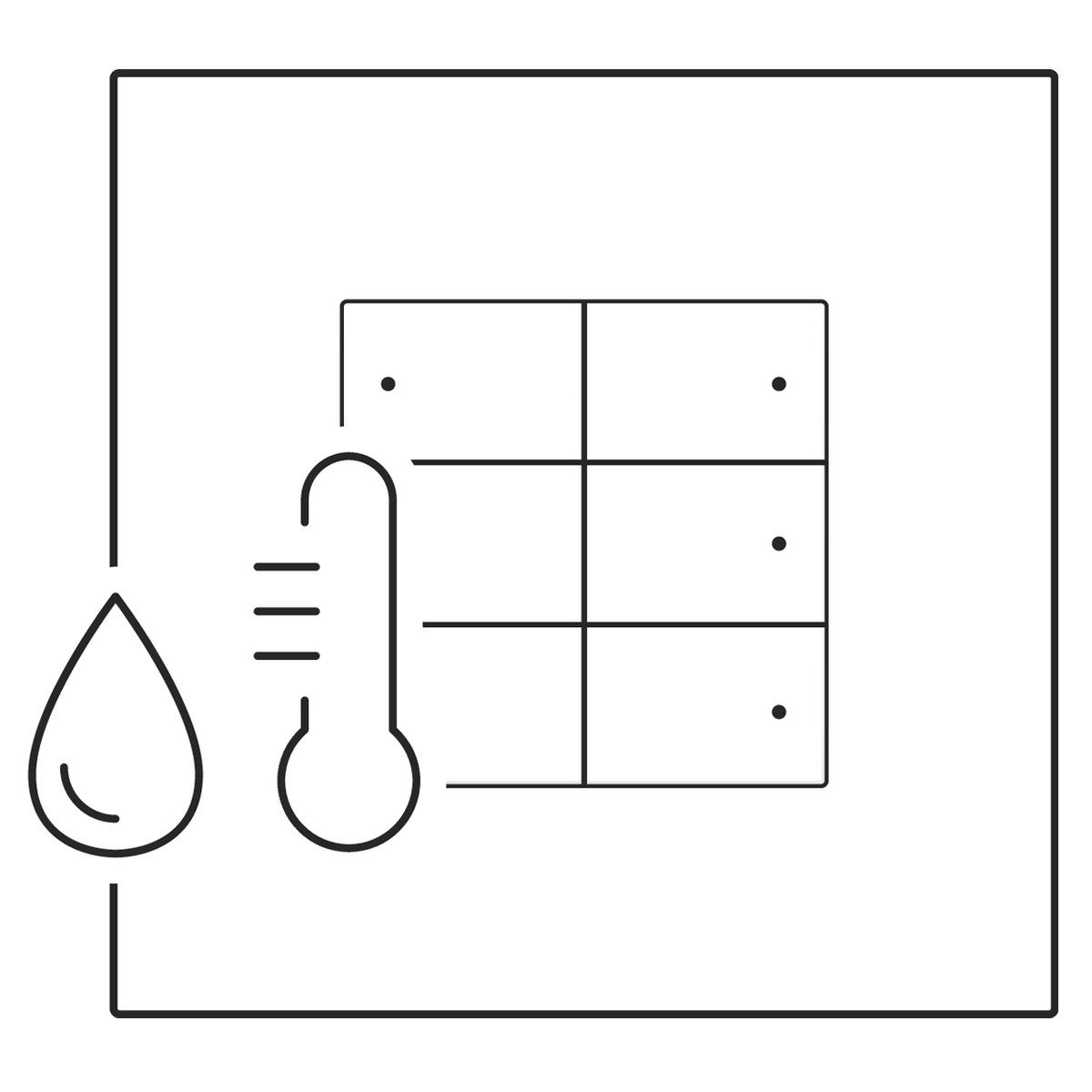 Innovativt 6- tryk til Niko Home Control er et betjeningsstryk med integreret temperatur- og fugtighedssensor. Med denne nye funktion kan der nemt implementeres multizonestyring af klima og ventilation, hvilket ikke kun forbedrer komforten, men også øger energieffektivitet. Sensorens målte værdier kan ses i Niko Home Appen, på din smartphone eller tablet. Tilsvarende indstilles dine ønskede set-punkter via Appen. LED´erne kan fungere som status indikator og giver feedback alt efter, hvordan den er programmeret. Trykket fungerer som orienteringslys, når LED´erne er tændt. TEMPERATURSENSOR Temperatursensoren kan tilpasses til at styre varme-/kølezoner og skabe det indeklima, du ønsker. Den kan enten fungere som en almindelig termostat eller styre f.eks. solafskærmninger. FUGTIGHEDSSENSOR Fugtighedssensoren åbner for endnu flere muligheder, som automatisk ventilationsstyring i rum som badeværelser og toiletter. MONTERING OG DESIGN Trykket fastgøres nemt til et vægmonteret busprint via en klikmekanisme. Trykket er tilgængelig i alle Niko designs og kan matches til lige præcis din indretning og stil. Optimer din hjemmeautomatisering med præcision, komfort og smart teknologi. Ramme bestilles separat.