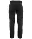 Bukserne har en moderne, smal pasform og er udstyret med alt fra baglommer og lårlommer til penlomme, mobillomme og knivlomme. Du får også en D-ring til nøgler eller ID-kort, og benlængden kan forlænges ved at sprætte en indvendig søm op – smart hvis du har brug for lidt ekstra længde. Farven sort er praktisk og ser godt ud, uanset om du arbejder ude eller inde.
