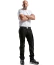 Her får du et par sorte servicebukser, der er lavet til dig, der sætter pris på både komfort og slidstyrke i hverdagen. Bukserne er lavet i en let kvalitet med elastik i livet og lynlåslukning, så de sidder godt uden at stramme. De forformede knæ og smalle pasform gør, at du kan bevæge dig frit – uanset om du arbejder på værkstedet, i industrien eller klarer opgaver derhjemme.