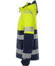 Jakken har ripstop materiale for øget slidstyrke og en justerbar samt aftagelig hætte. Ergonomisk formskårne albuer, ærmevidde justerbar med velcro og hul til tommelfingeren forbedrer pasform og funktionalitet. For øget praktisk anvendelse er jakken udstyret med en indbygget ID-kort holder og flere lommer. Certificeringer som EN 20471 Klasse 1 (Hi-Vis), EN 343 Klasse 4/4 (Regn) og OEKO-TEX® STANDARD 100 er med til at understøtte jakkens kvalitet og sikkerhed.