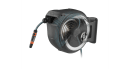 Vægbeslaget kan drejes over 180°, hvilket giver dig stor bevægelsesfrihed under vandingen og forhindrer slangen i at knække. Træk blot den 30 meter lange slange ud til den ønskede længde, og du er klar til at begynde. Slangen låses automatisk på plads ved korte intervaller, hvilket gør det enkelt at vande planterne. Når du er færdig, trækker du let i slangens ende for at frigøre låsemekanismen, og en indbygget stålfjeder ruller slangen automatisk tilbage.