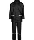 Her får du et praktisk regnsæt i sort, der består af både jakke og bukser – lige til at tage på, når himlen åbner sig. Sættet er lavet i slidstærkt PU-polyester og har en vandtæthed på hele 8.000 mm, så du kan holde dig tør, uanset om du cykler, arbejder ude eller bare skal fra A til B.