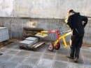 Læggemaskine med hydraulisk stempelsystem og tang, der kan indstilles fra 400-800 mm. Fliselæggervognen håndterer således de mest gængse fliser 500-800 mm. i en maks. højde på 900 mm. Udstyret med kraftige 4.00 x 8 lufthjul. Lastkapacitet maks. 125 kg.