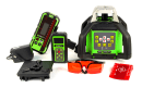 R740 rotationslaser, R117 modtager, R174 fjernbetjening, aftageligt Li-Ion batteri, oplader, laserbriller og målplade for øget synlighed – komplet sæt i robust transportkuffert.